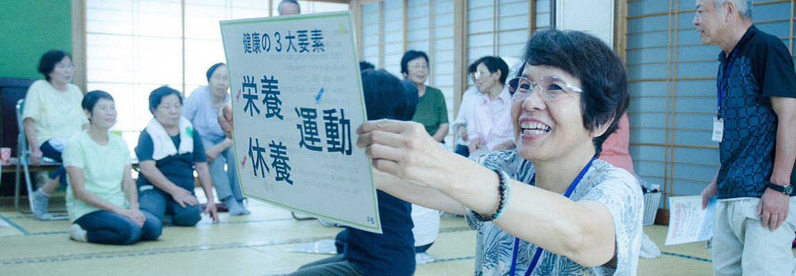 体を動かすと気持ちがいい、みんなで一緒に何かすると自然と笑顔になってしまう。そんな経験はありませんか?HATACHIでは2005年から「健康寿命」の研究をはじめ、「自立体力検定」や「ロコレッチ」など、さまざまな商品やサービスを生み出してきました。「健康寿命」を延ばすためには、運動習慣や社会参加がとても大切です。「ウェルスマイル・プロモーション」は、継続的に正しい生活習慣を身につけることができ、まちや会社を健康にする仕組みを提供するサービスです。